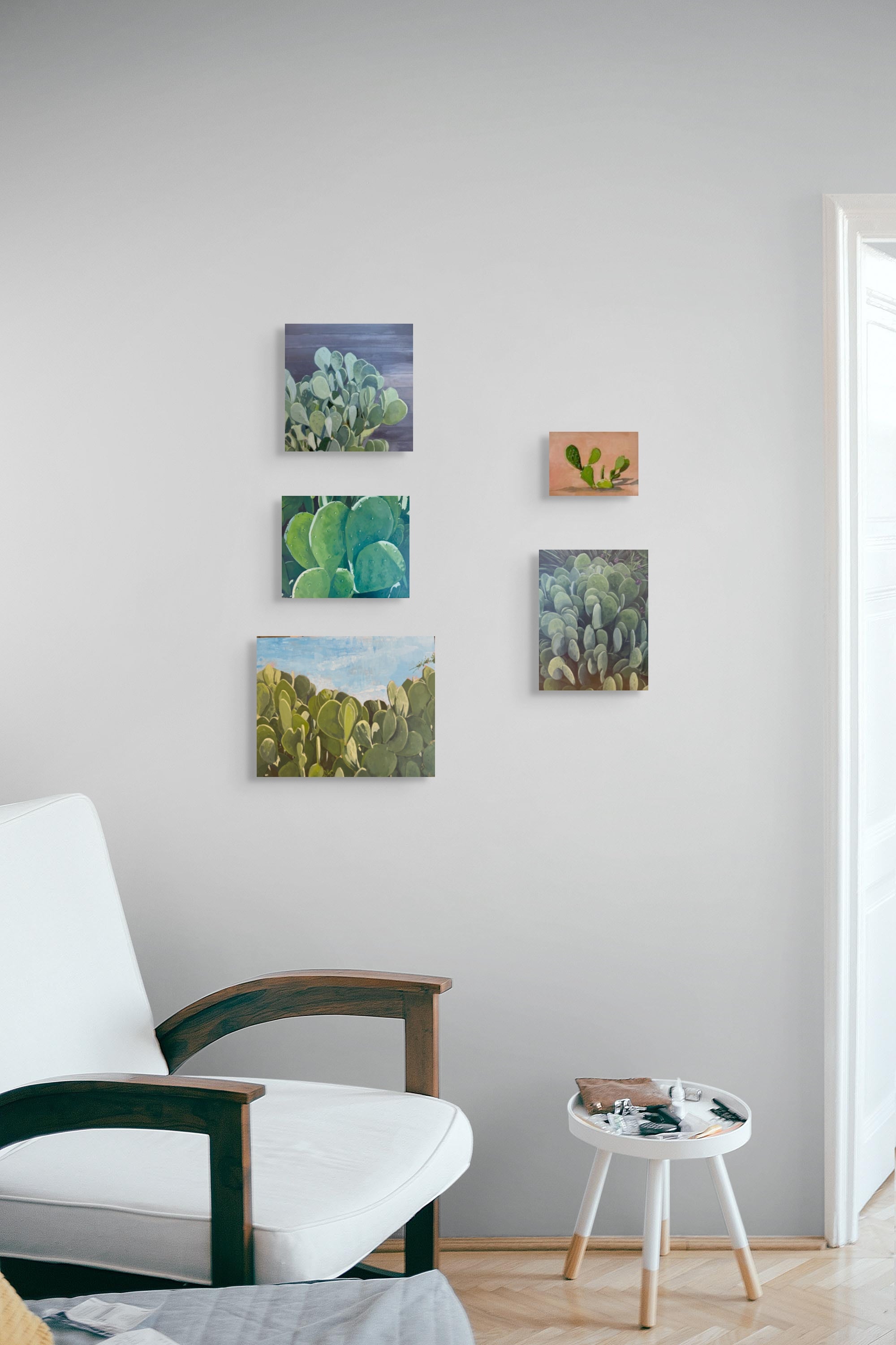 My current explorations of prickly pear cactus capture the interplay of light and shadow across the planes of prickly pear pads. The subtle shifts in value never fail to catch my attention and transform the familiar into something almost abstract. I’m most drawn to the repetition of form and rhythm, and in this series I explore how small changes in light and angle can give us pause and help us find beauty in the everyday.