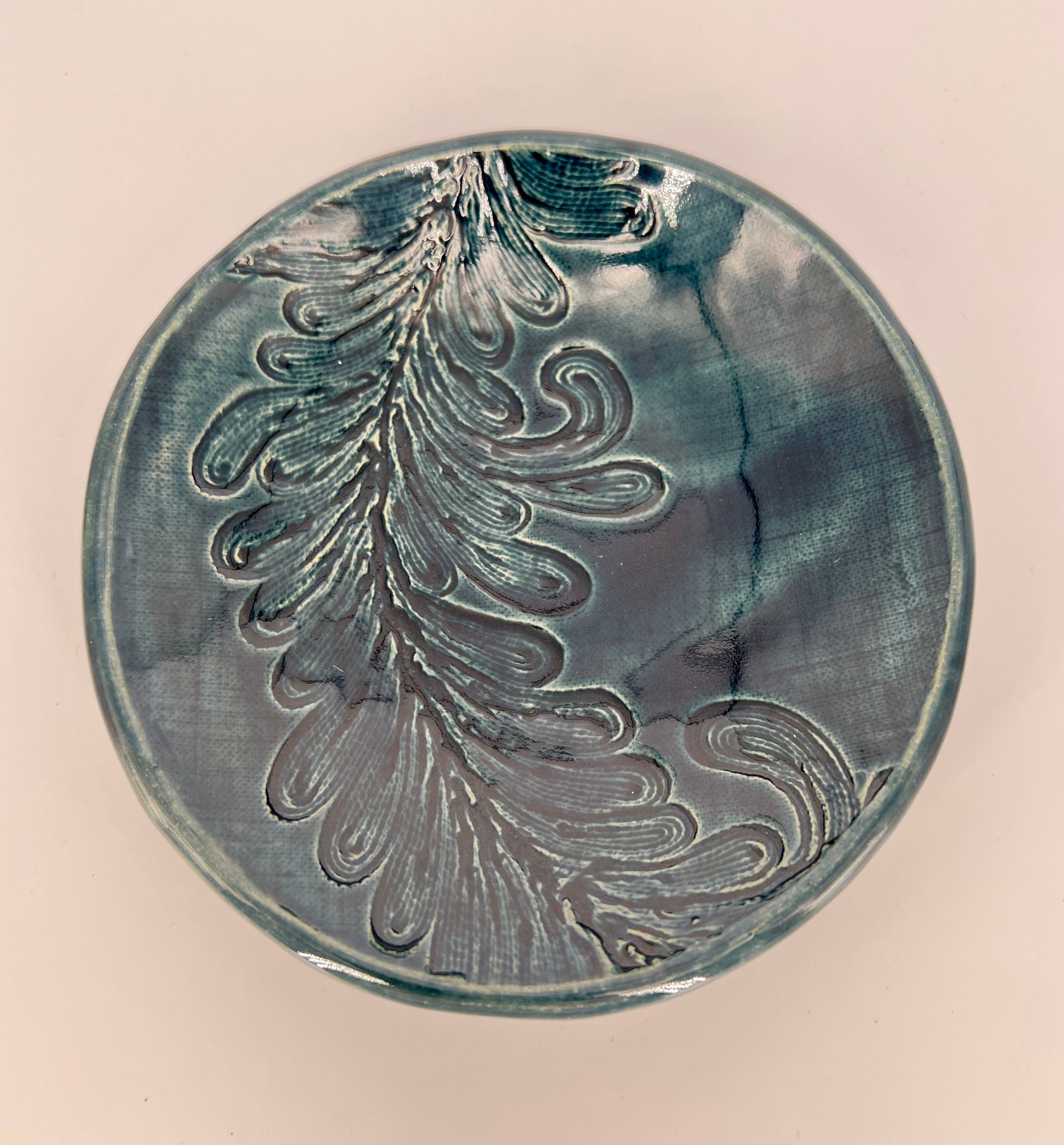 This adorable round dish with a dark blue feather pattern is perfect for your jewelry, change, keys or even for prep work in your kitchen!