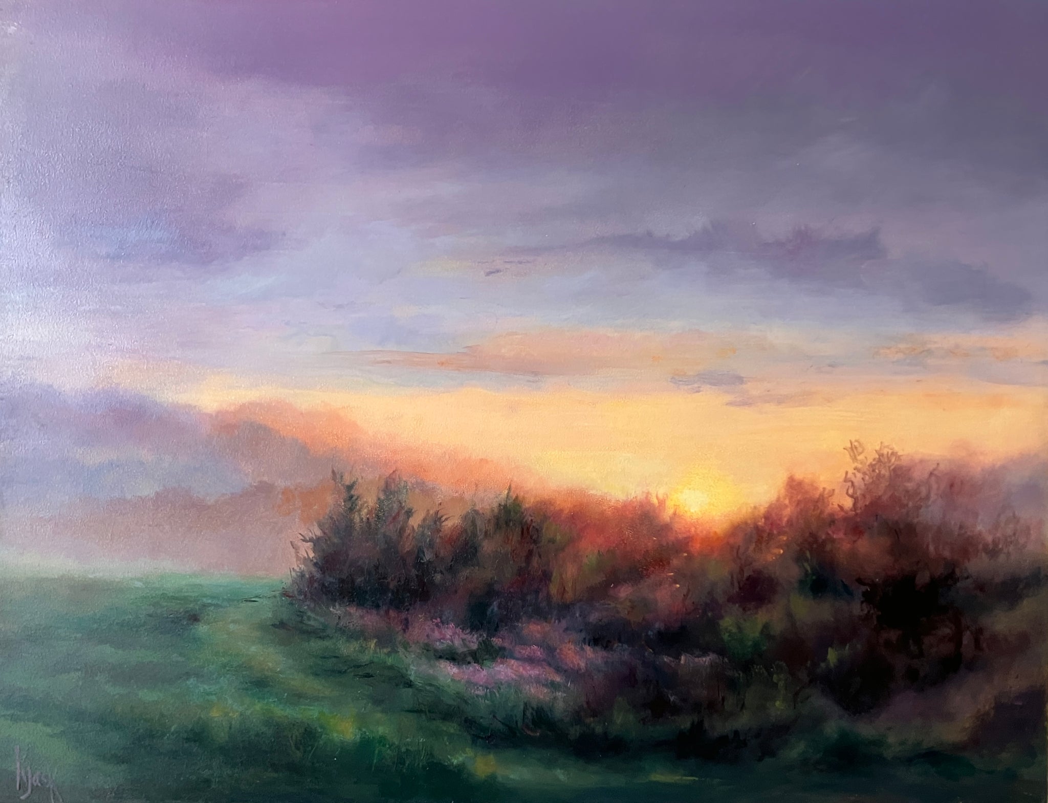 My landscapes emerge from a desire to capture a fleeting moment in time that evokes a sense of awe and wonder.  I am drawn to the liminal spaces in nature where edges blur between the  familiar and the otherworldly.