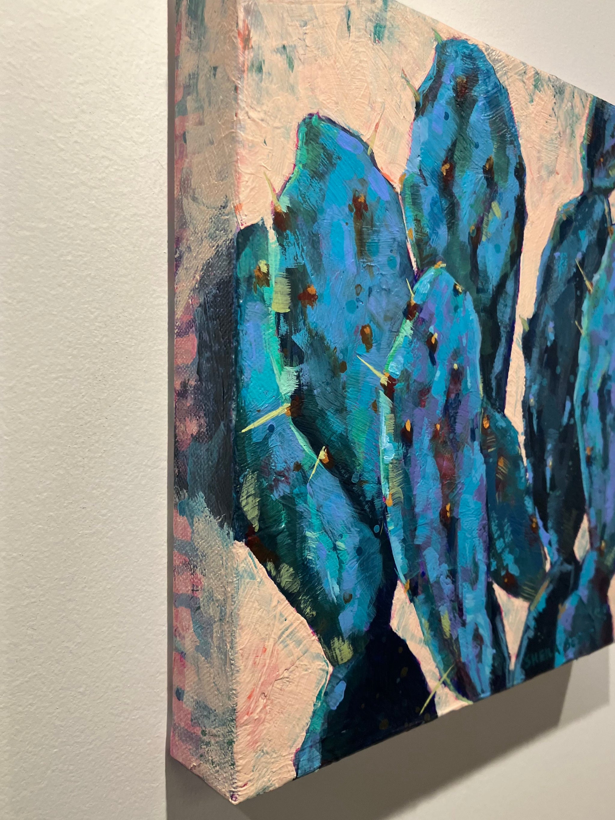 Sheila Scott is a Texas painter whose work celebrates the connection between people, land, and the animals that share it. Inspired by the wide skies and resilient flora of her home state, she paints horses, native plants, and the quiet objects of daily life in layered acrylics that balance bold color with a modern folk sensibility.