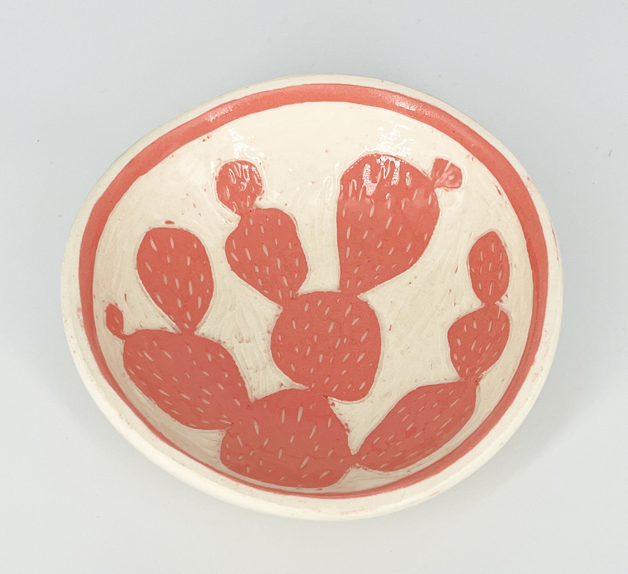 This adorable round dish with a pink prickly pear pattern is perfect for your jewelry, change, keys or even for prep work in your kitchen!