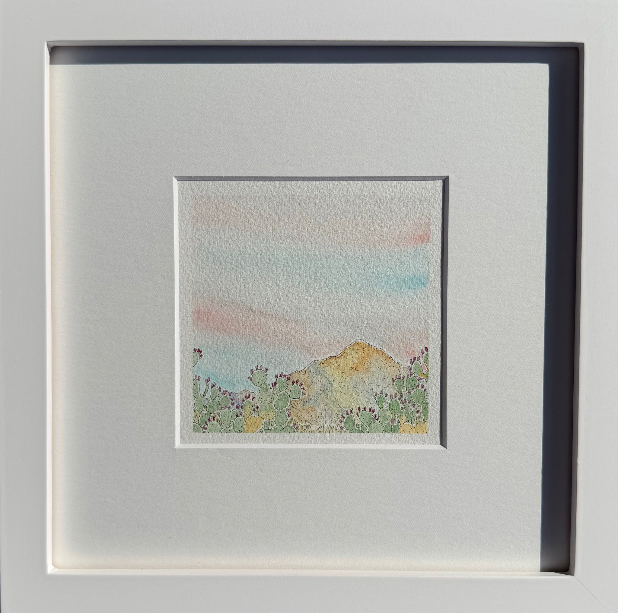 Inspired by the Texas desert. Framed with museum glass to prevent fading and protect the piece long term.