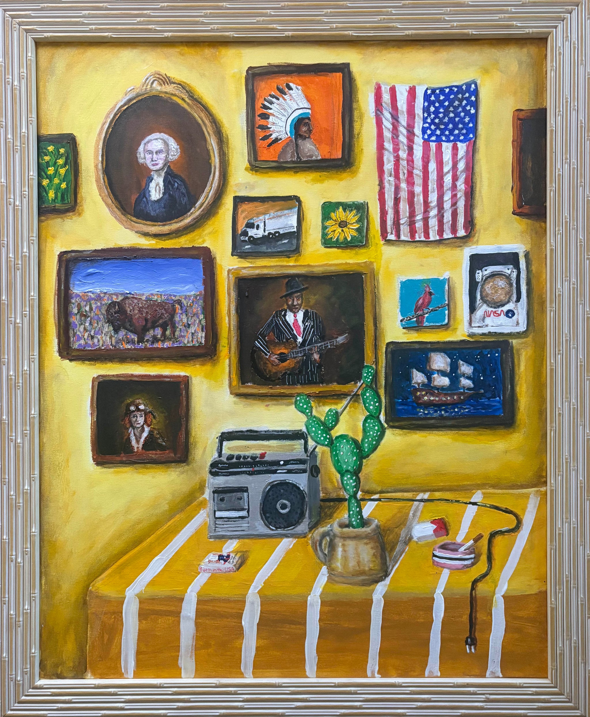 John Donofrio is a self-taught Austin artist whose work blends personal storytelling with Americana. He paints over discarded canvases from Austin Creative Reuse, often placing them in vintage frames to give new life to forgotten materials. Music deeply influences his process - he paints with songs playing and hopes some of that rhythm infuses into the work. John’s portfolio feels like a cross-country road trip: traveling back roads with no plan, good songs on the radio, and landscapes - both on the tables of folks visited along the way and scenes observed out his car window.