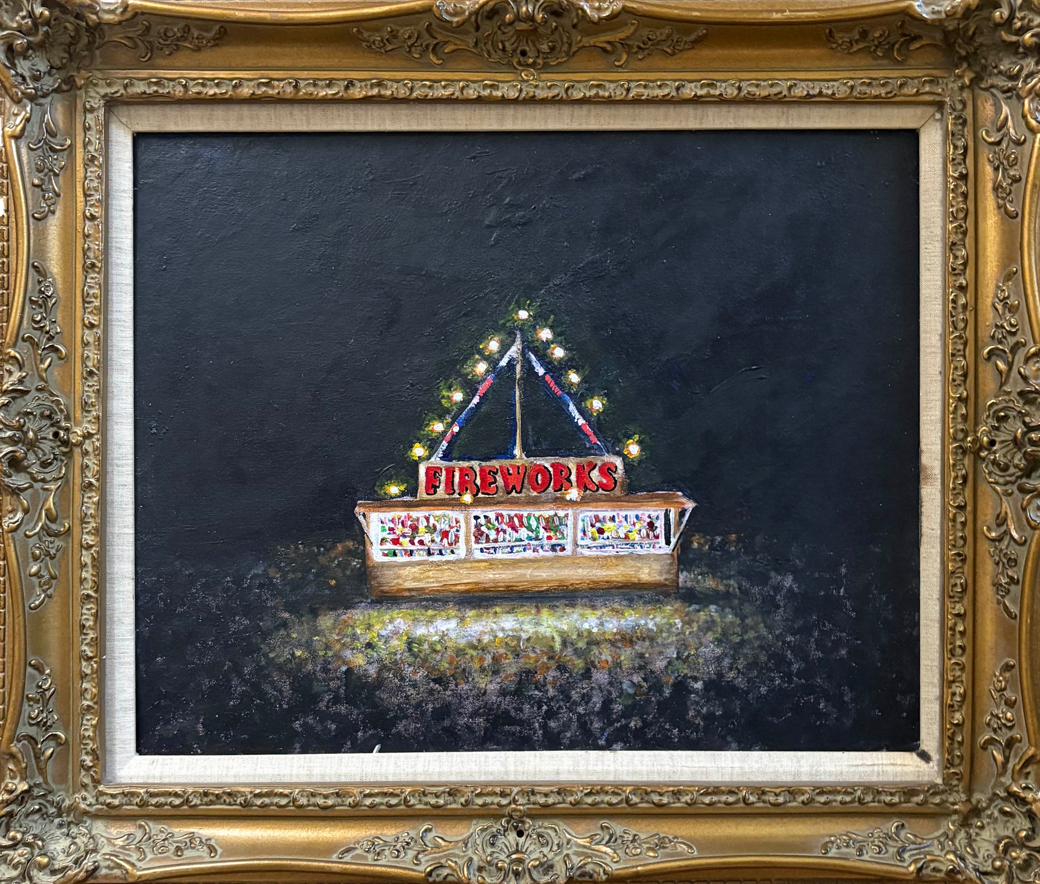 John Donofrio is a self-taught Austin artist whose work blends personal storytelling with Americana. He paints over discarded canvases from Austin Creative Reuse, often placing them in vintage frames to give new life to forgotten materials. Music deeply influences his process - he paints with songs playing and hopes some of that rhythm infuses into the work. John’s portfolio feels like a cross-country road trip: traveling back roads with no plan, good songs on the radio, and landscapes - both on the tables of folks visited along the way and scenes observed out his car window.