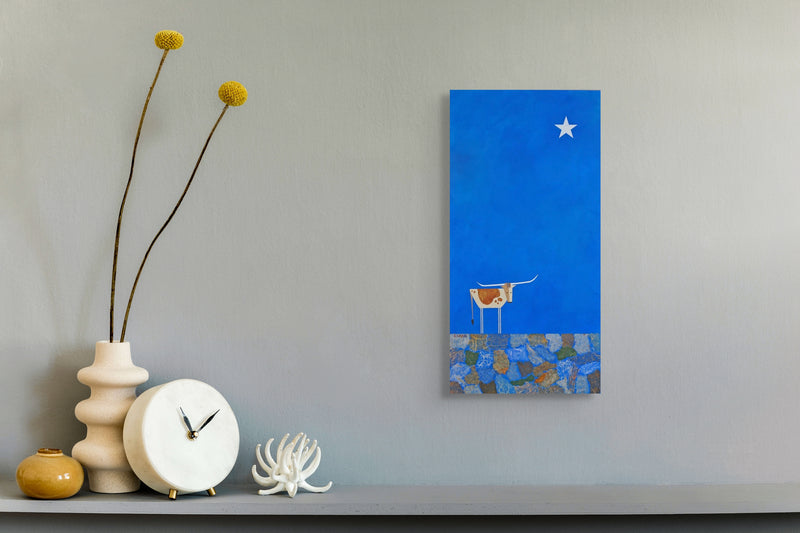 The iconic Texas longhorn under a bright and bold star. A truly Texas painting, paying homage to our Lone Star State.