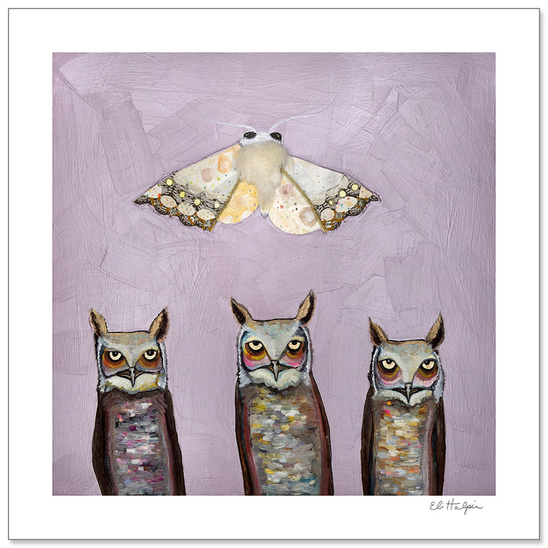 Moth and Owls Print by Eli Halpin + 8"x8" Paper